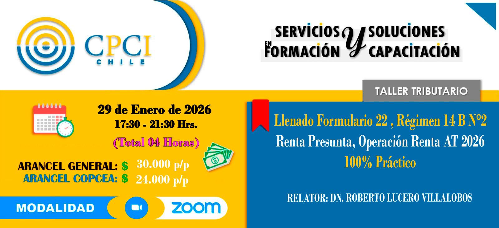 Consultas e inscripciones al correo electrónico: capacitacion@www.cpcichile.cl (Indicar nombre completo, rut, teléfono y correo electrónico).