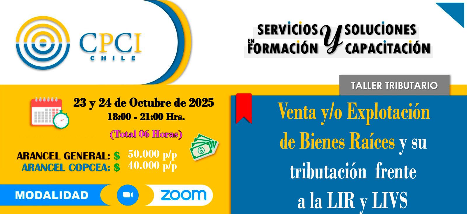 Oct 28 2025 TALLER TRIBUTARIO – VENTA Y/O EXPLOTACION DE BIENES RAÍCES Y SU TRIBUTACIÓN FRENTE A LA LIR y LIVS TALLER TRIBUTARIO